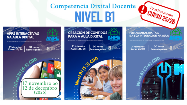 | Matrícula aberta | 17 de novembro ao 12 de decembro | 2025 | APPs Interactivas na aula dixital | 30 | En rede | |